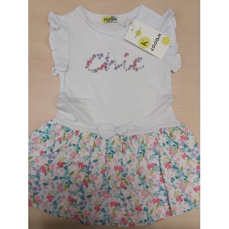 Abito bambina Losan bianco fantasia fiori, in cotone, gonna foderata in cotone
