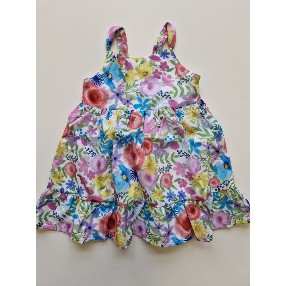 Abito bambina Losan bianco fantasia fiori, con spalline ed elastico sul retro