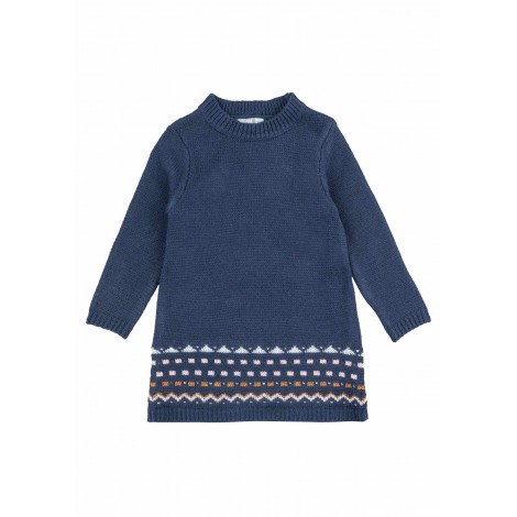 Abito bambina Losan blu, girocollo, bordo e polsini a costine, vestibilità regolare
