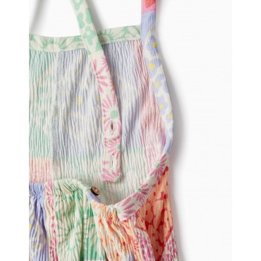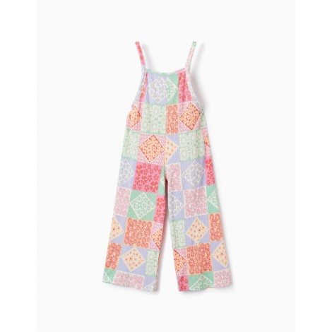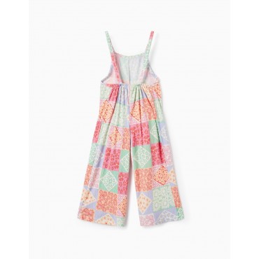 Tuta per bambina con fantasia floreale multicolor. Materiale con un tocco di elastan per una maggiore libertà di movimento. Spalline regolabili sul retro con bottoni. Una tuta leggera e colorata con pantaloni ampi e comodi, perfetta per il gioco di tutti i giorni!
