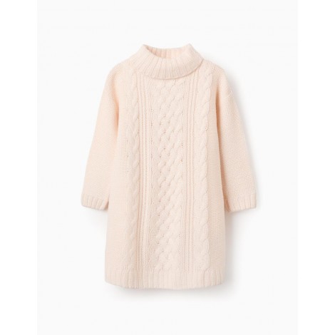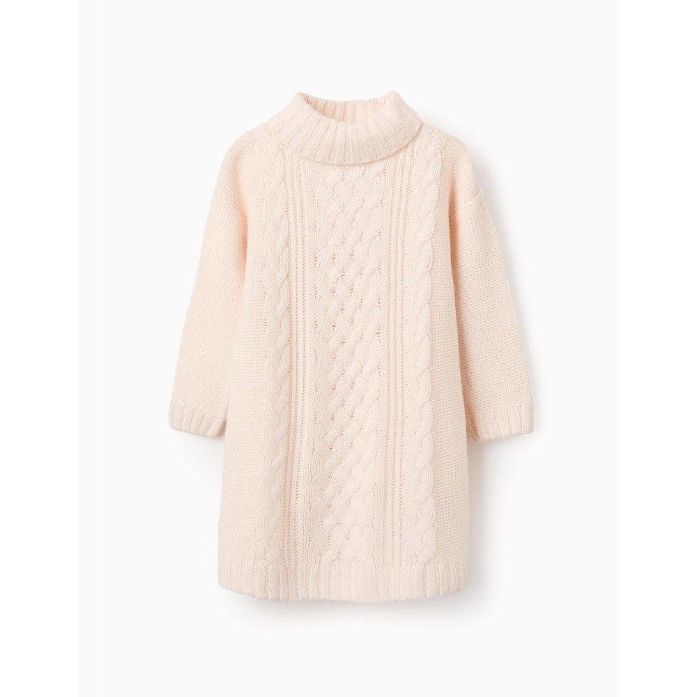 Abito panna in maglia per bambine, con effetti intrecciati. Collo alto. Polsini a coste per una vestibilità perfetta. Vestibilità a trapezio. Caldo e confortevole, per look comodi e versatili.