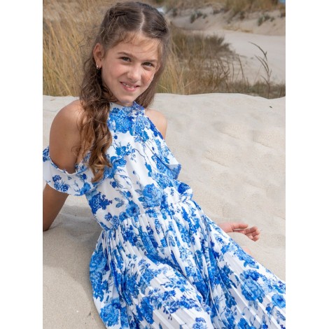 Tuta intera bambina/ragazza Energiers bianca fiori celesti