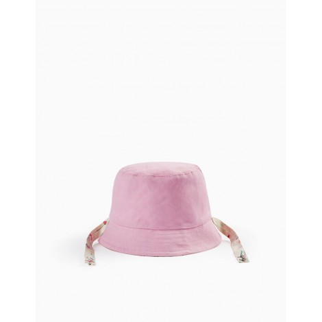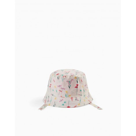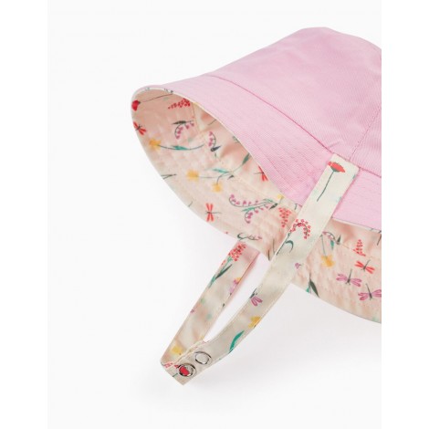 Cappello reversibile per neonata, realizzato in 100% cotone. Un lato rosa a tinta unita e un altro con motivo floreale. Con fodera e cinturini laterali a motivo floreale con bottoni a pressione per una migliore vestibilità sulla testa. Un accessorio indispensabile per proteggere la pelle sensibile del bambino nelle giornate di sole
