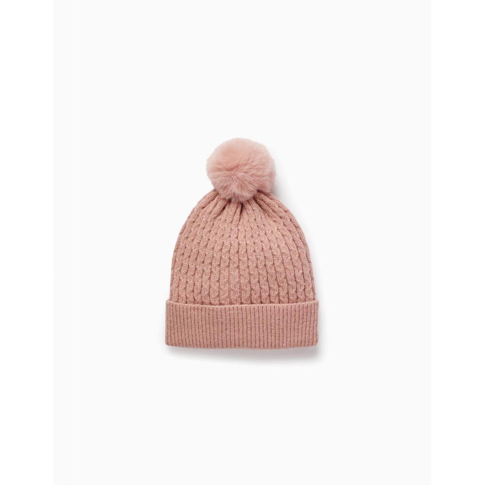 Berretto lavorato a maglia con soffice pompon per bambina. Con una base pieghevole per un maggiore comfort quando si indossa. Un cappello caldo e pratico.