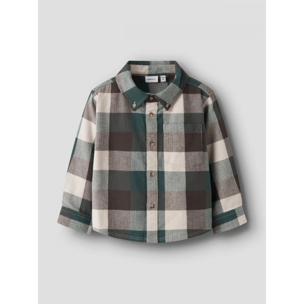 Camicia bambino Name it fantasia quadri verde beige