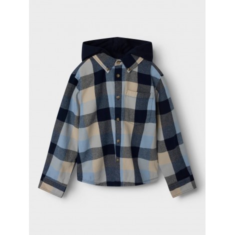 Camicia bambino/ragazzo Name it fantasia quadri celeste beige