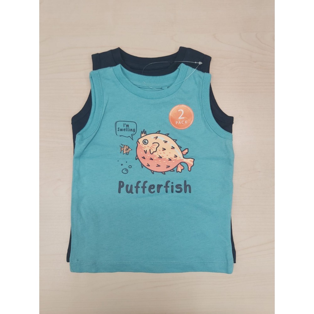 Canotta neonato Zippy 2Pack verde acqua stampa pesce palla