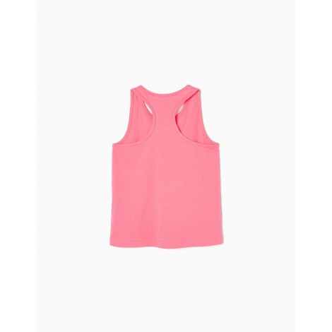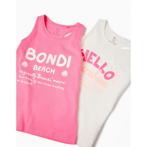 Confezione da due top per bambina, 100% cotone. Include un top bianco e uno rosa, entrambi con stampa frontale e dettagli glitterati. Etichetta interna stampata per non irritare la pelle. Design svasato. Per un look leggero, comodo ed elegante.