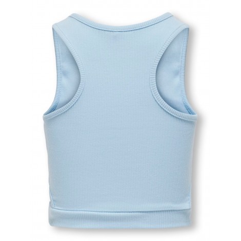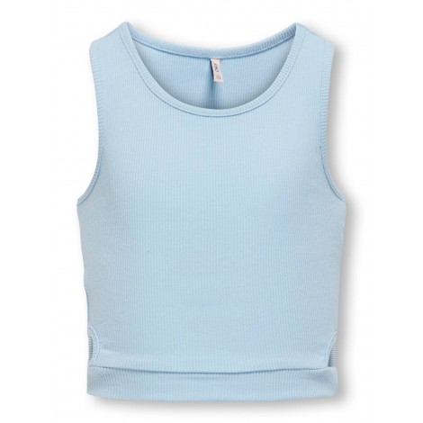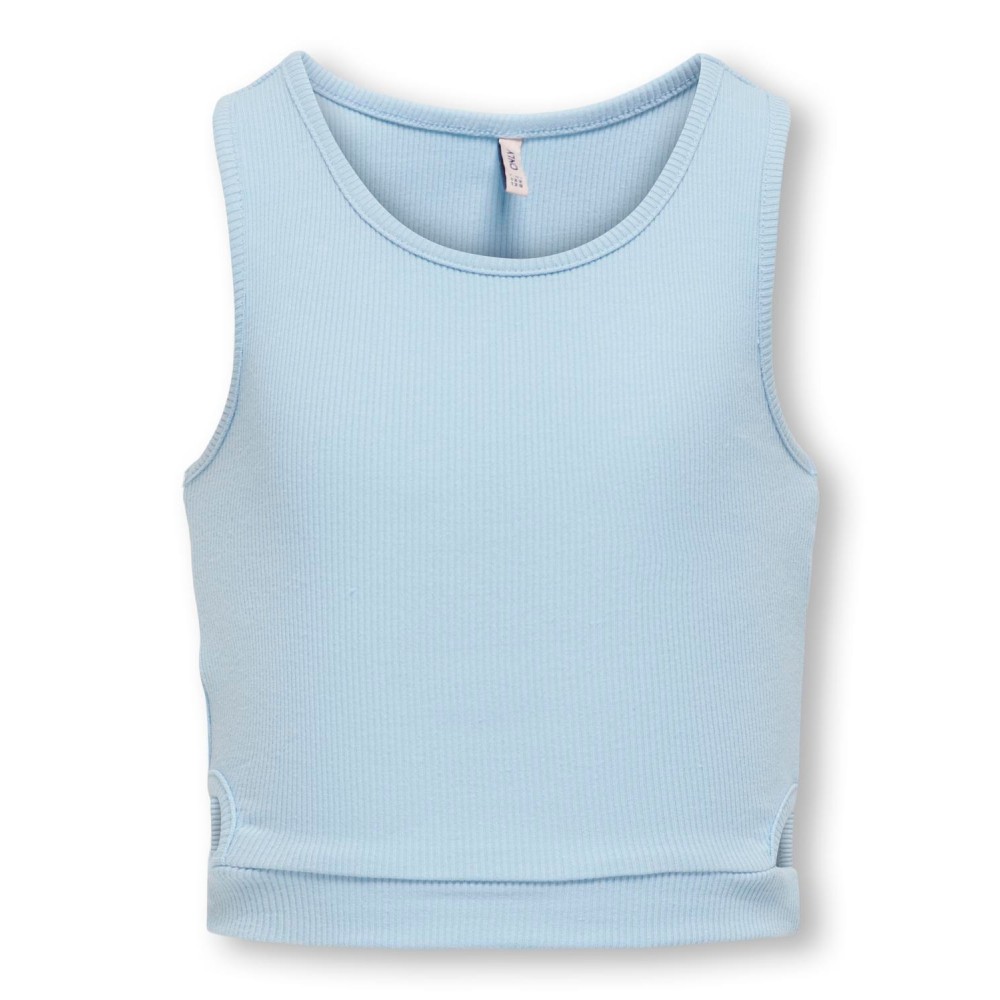 Canotta bambina/ragazza Only celeste modello corto, a costine, dettaglio buchi laterali