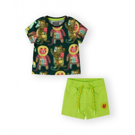Completo neonato Canada, maglia verde fantasia jungle wild, pantaloncino verde con elastico regola vita interno