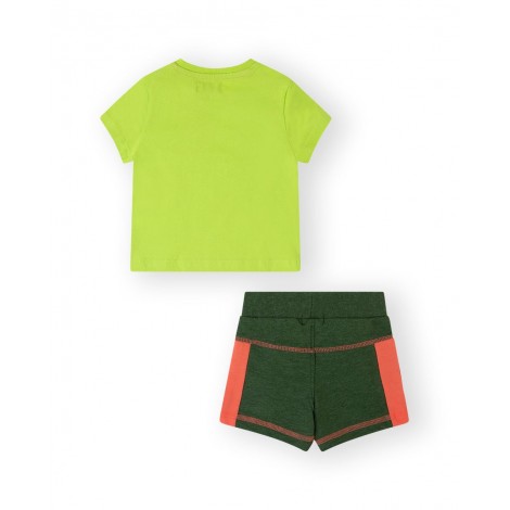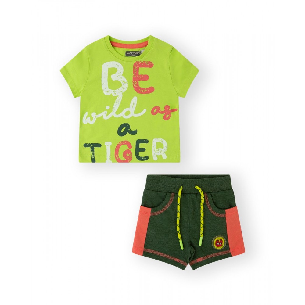Completo neonato Canada, maglia verde stampa tiger jungle, pantaloncino verde dettagli arancioni, con elastico regola vita interno