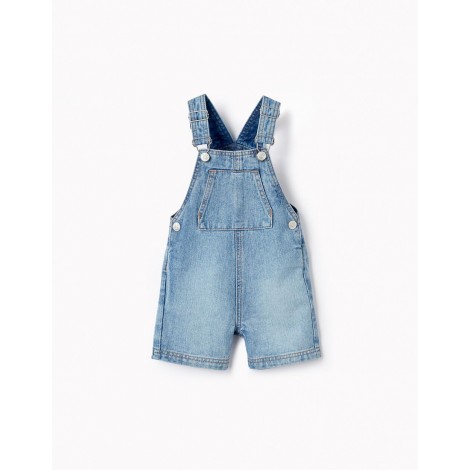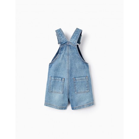 Salopette corta azzurra per neonato, realizzata in denim 100% cotone. Cinghie regolabili. Si chiude con bottoni automatici sulle spalline e sui lati per indossarlo facilmente. Una tasca frontale e due tasche posteriori. Un capo pratico e comodo per la vita quotidiana del bambino. Un capo della collezione Comfort Denim, pensato per offrire il massimo comfort e libertà di movimento al bambino.