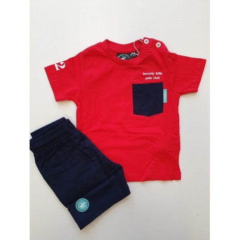Completo neonato Beverly Hills Polo Club rosso taschino blu