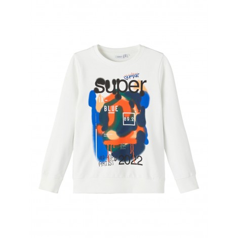 Felpa bambino/ragazzo Name it bianca stampa Hip-Hop Artist, interno in cotone garzato