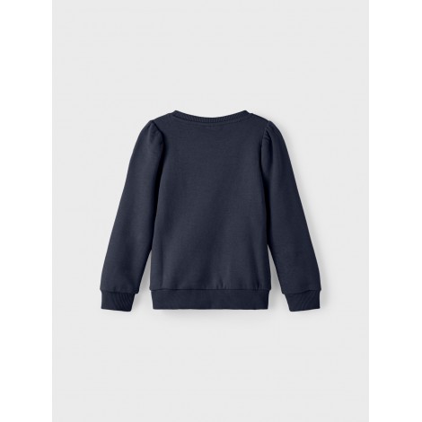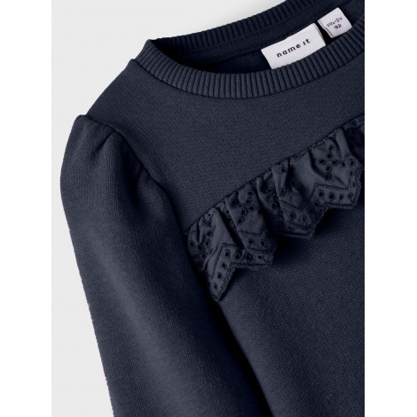 Felpa Name it blu,girocollo, polsini elasticizzati a costine, rouge in sangallo frontale,