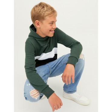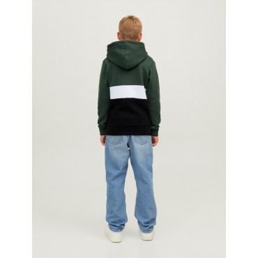 Felpa bambino/ragazzo Jack & Jones verde e nera con cappuccio