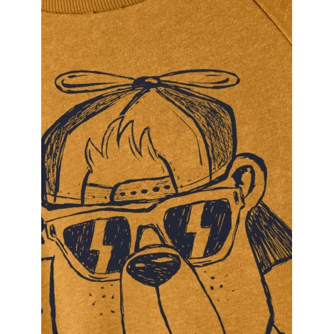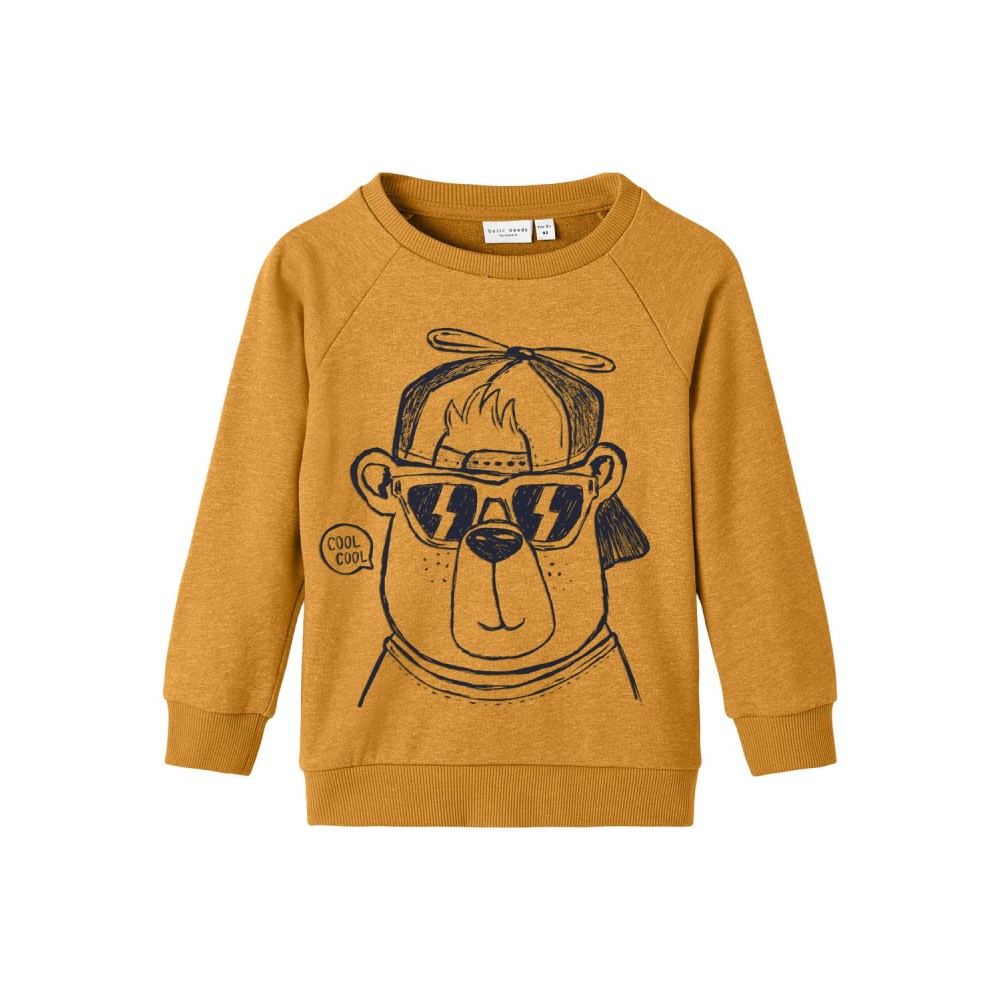 Felpa bambino Name it senape stampa orso, interno in cotone garzato, collo e polsini a costine
