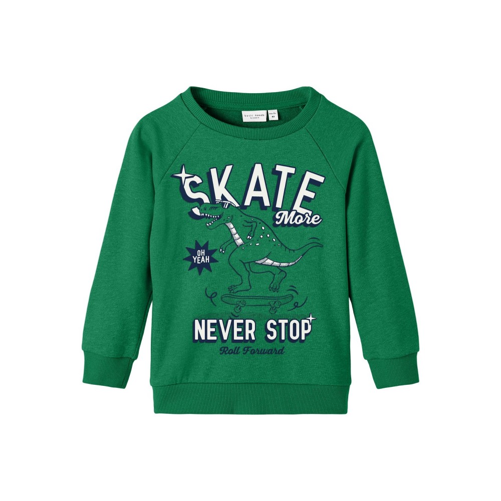 Felpa bambino Name it verde stampa dinosauro skate