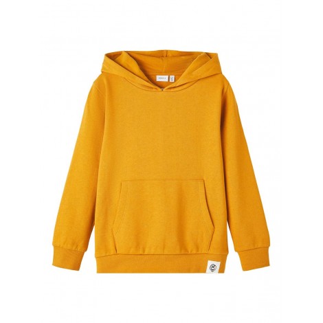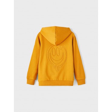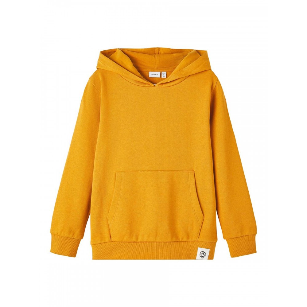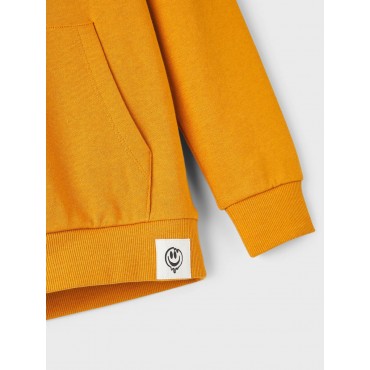 Felpa bambino Name it senape, con cappuccio, interno in cotone felpato, smile ricamato sul retro
