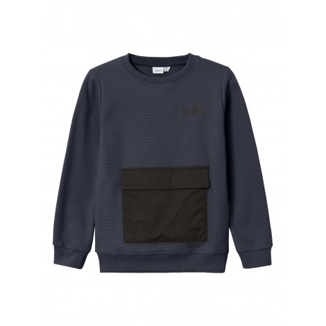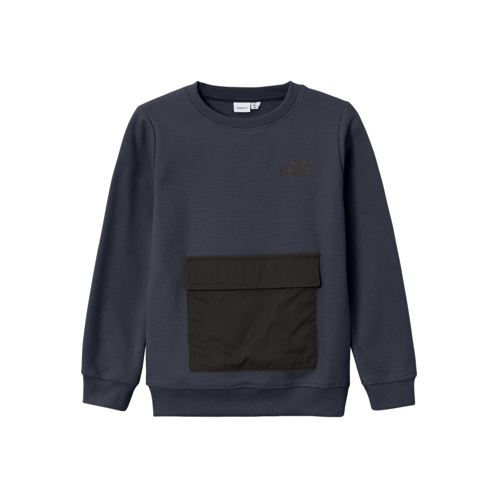 Felpa bambino/ragazzo Name it blu dettaglio tasca, modello girocollo, effetto nido d'ape