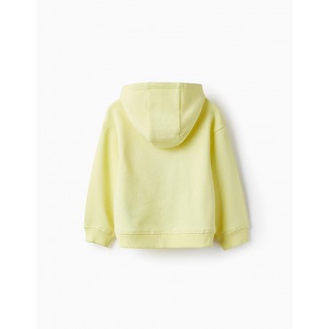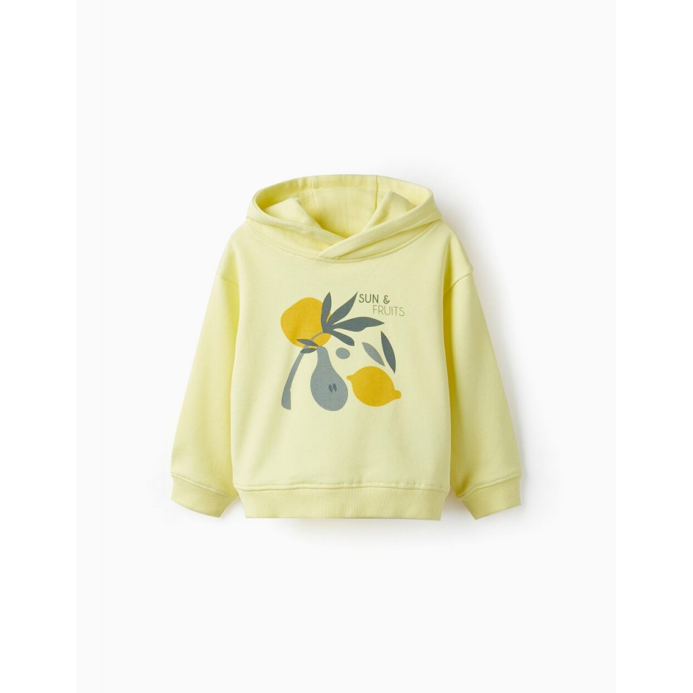 Felpa gialla con cappuccio per neonato, 100% cotone. Stampa frontale. Polsini e orlo a costine per una migliore vestibilità. Un capo pratico e confortevole per le giornate fredde.