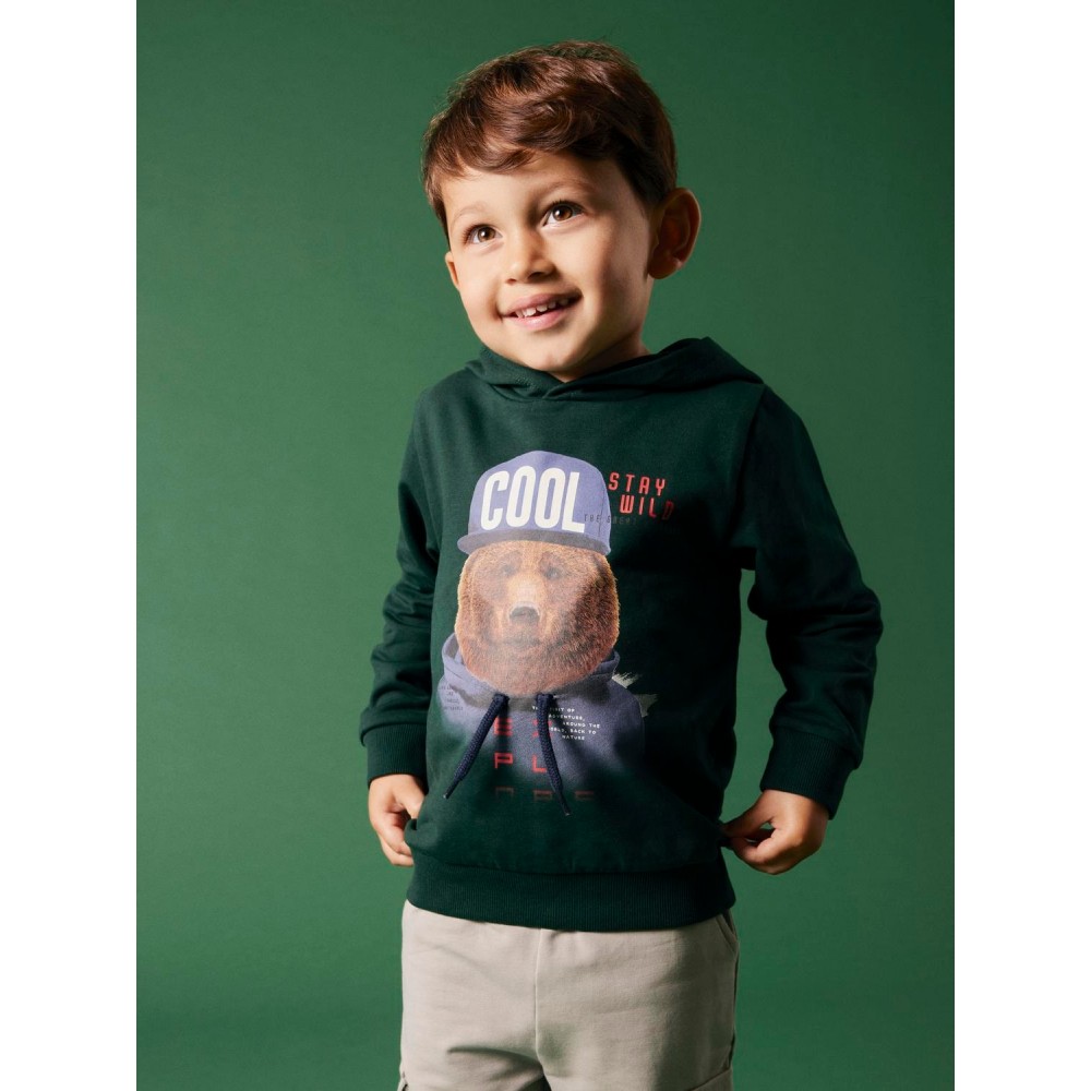 Felpa bambino Name it verde stampa orso, con cappuccio, interno in cotone garzato