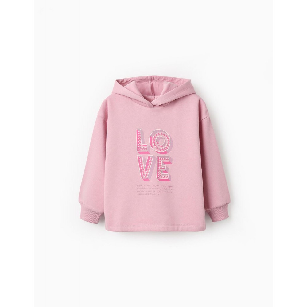 Felpa rosa con cappuccio per bambine, con interno felpato per un maggiore comfort termico. Stampa frontale del tema New York. Polsini a costine per una vestibilità perfetta. Base con piccoli spacchi sui lati per un tocco di fluidità. Una felpa morbida, comoda e rilassata, perfetta per i look di tutti i giorni.