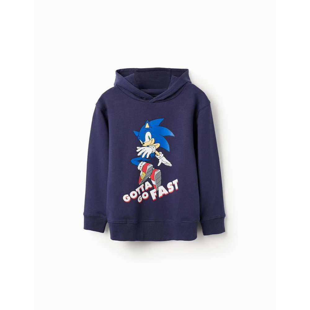 Felpa con cappuccio blu scuro per bambini, realizzata in materiale 100% cotone, con interno garzato per un maggiore comfort. Stampa frontale di Sonic. Polsini e orlo a costine per una vestibilità perfetta. Comoda e accogliente, questa felpa è perfetta per i bambini fan di Sonic!