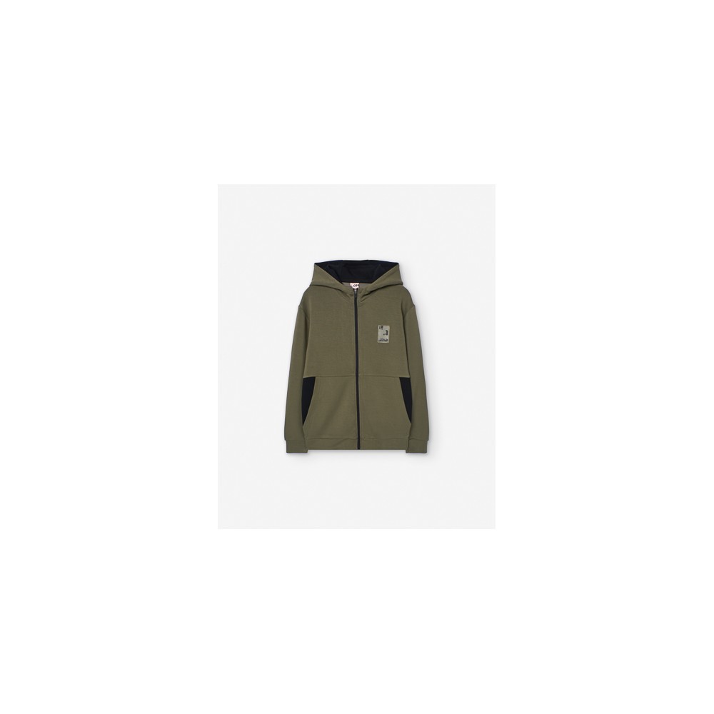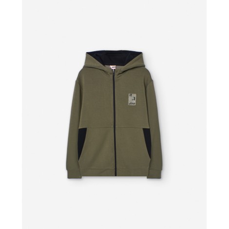 Felpa bambino/ragazzo Losan verde militare, con zip e cappuccio