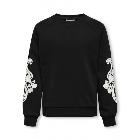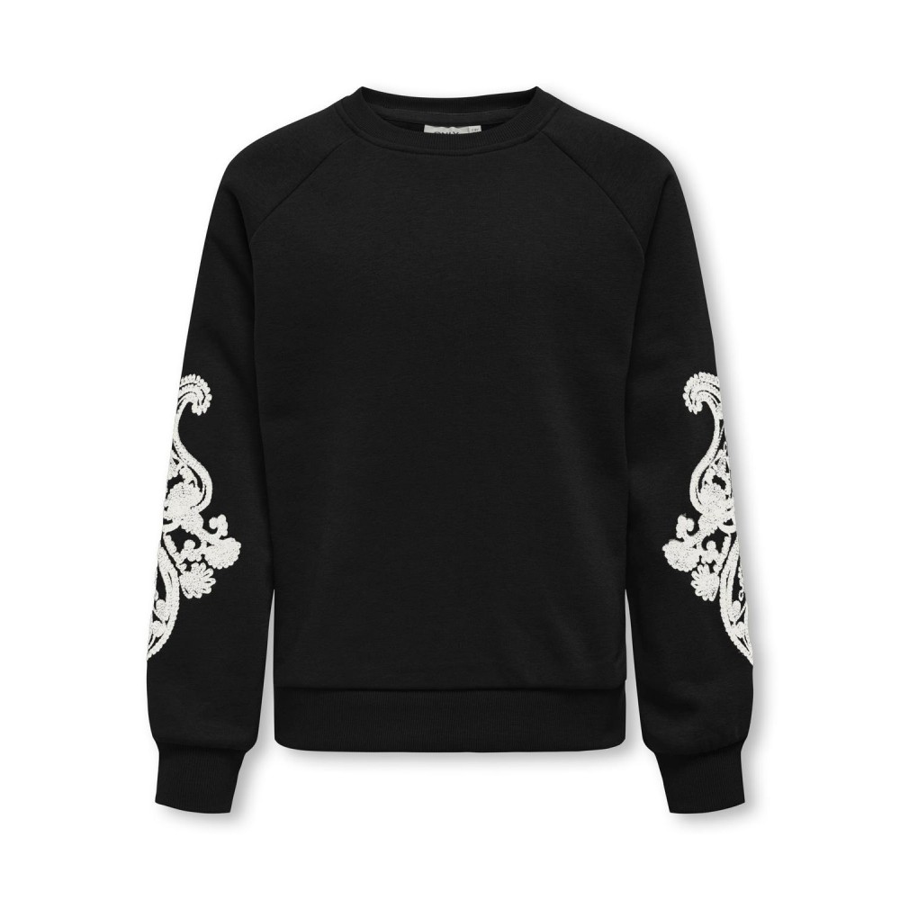 Felpa bambina/ragazza Only nera maniche ricamate