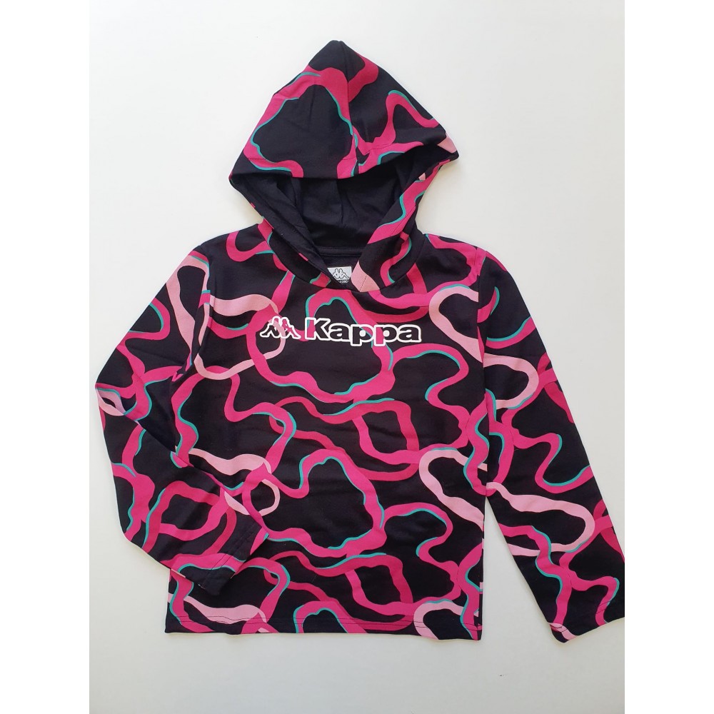 Felpa bambina/ragazza Kappa nera fantasia fucsia, interno in cotone garzato