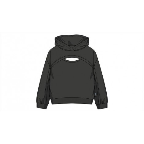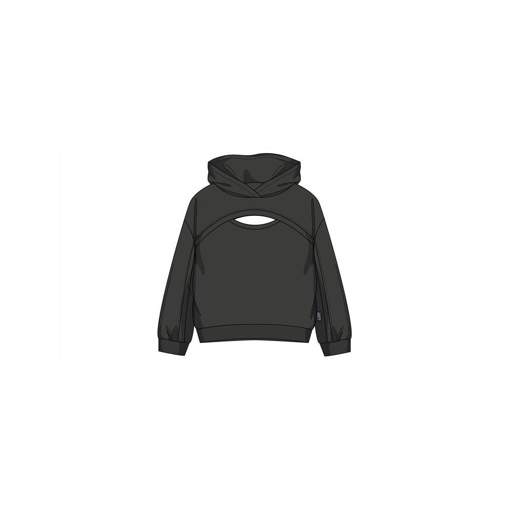 Felpa bambina/ragazza Losan grigia dettaglio buco, con cappuccio, modello corto, interno in cotone felpato