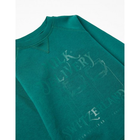 Felpa verde per bambino, in cotone felpato per un maggiore comfort termico. Stampa chiara sul davanti. Colletto, polsini e fondo a costine per una facile vestizione e una vestibilità perfetta. Una felpa pratica e comoda, perfetta per tutti gli stili.