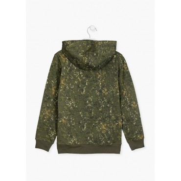 Felpa bambino Losan verde militare stampa Nomadic Movement con cappuccio