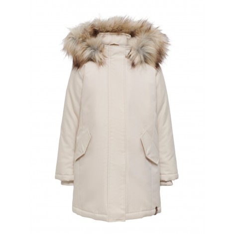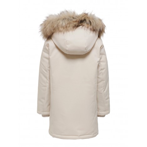 Parka bambina/ragazza Only panna, modello lungo, cappuccio removibile, pelliccia removibile, polsini elastici