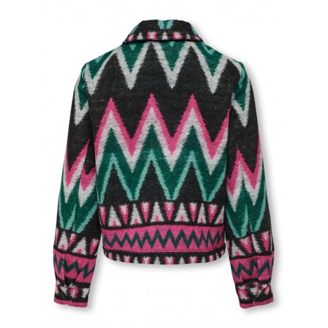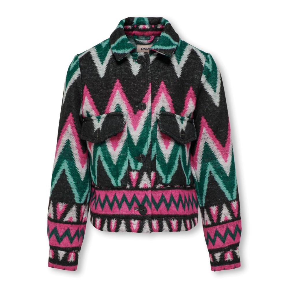Giacca bambina/ragazza Only nera fantasia colori, modello corto, apertura con bottoni, tasche sul petto