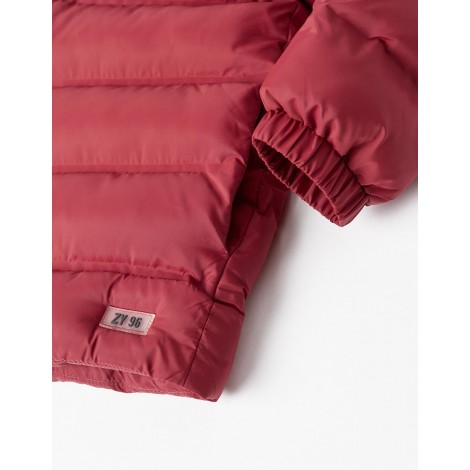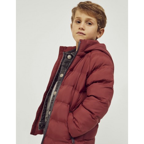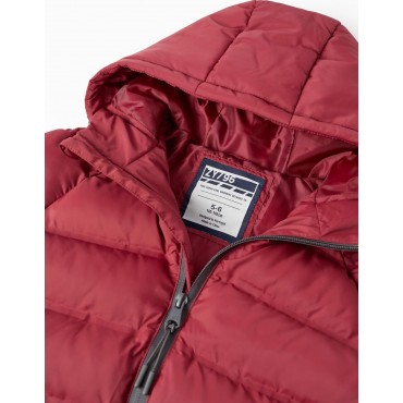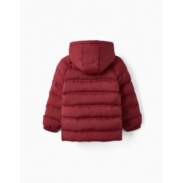 Piumino rosso scuro per ragazzi, con cappuccio, fodera e imbottitura. Polsini elastici per una vestibilità perfetta. Si chiude davanti con una cerniera a contrasto, con una mentoniera nella parte superiore. Due tasche laterali. Etichetta identificativa all'interno per inserire il nome del bambino. Un piumino caldo e confortevole per le giornate più fredde.