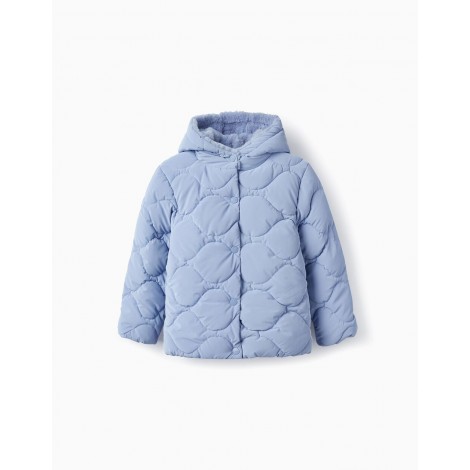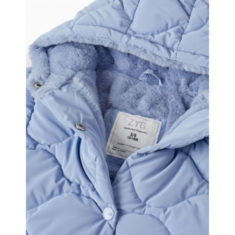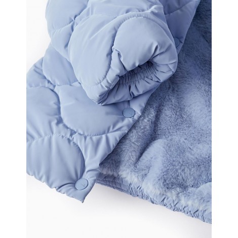 Piumino trapuntato blu per bambina, con cappuccio, imbottitura e fodera in morbida pelliccia per un ottimo comfort termico. Si chiude sul davanti con bottoni a pressione. Polsini e fondo con elastico per una vestibilità perfetta. Etichetta identificativa all'interno per scrivere il nome. Tessuto dal tocco morbido. Un capo perfetto per le stagioni fredde dell'anno.