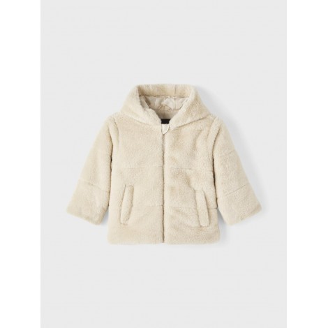 Pelliccia bambina Name it panna con cappuccio, apertura con zip