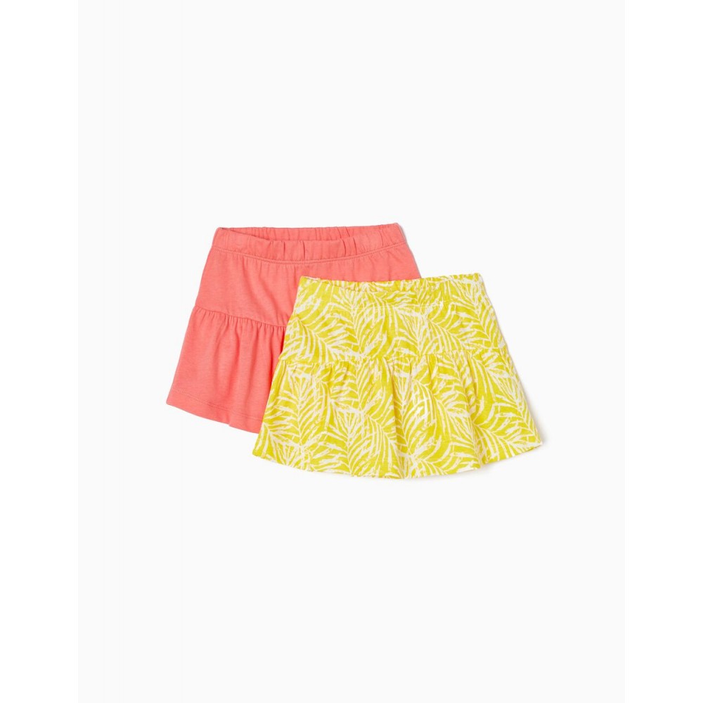 Set di due gonne per neonata, 100% cotone. Include una gonna rosa e un'altra con motivo bianco a contrasto. Cintura elasticizzata per una migliore vestibilità. Taglio arricciato per una finitura ondulata. Due pezzi divertenti e colorati, perfetti per entrare nello spirito estivo. We Care: questo capo è realizzato al 100% con fibre di cotone sostenibili.