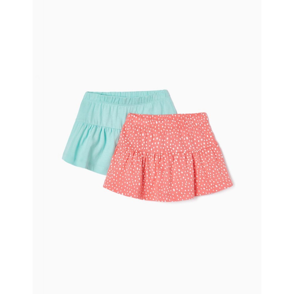 Set di due gonne per neonata, 100% cotone. Include una gonna rosa e un'altra con motivo a pois bianchi a contrasto. Cintura elasticizzata per una migliore vestibilità. Taglio arricciato per una finitura ondulata. Due pezzi divertenti e colorati, perfetti per entrare nello spirito estivo. We Care: questo capo è realizzato al 100% con fibre di cotone sostenibili.