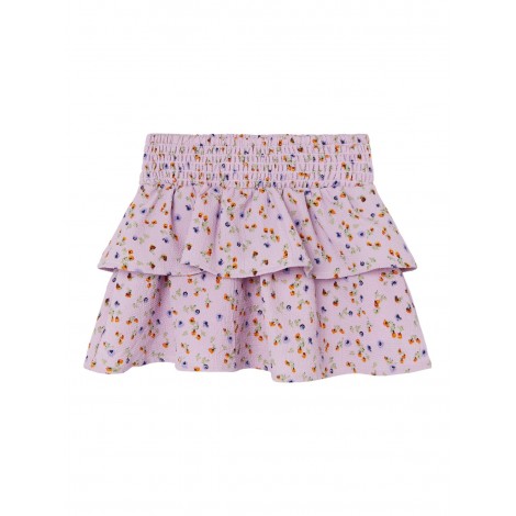 Gonna bambina Name it lilla fantasia fiori, con balze, elastico in vita