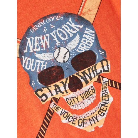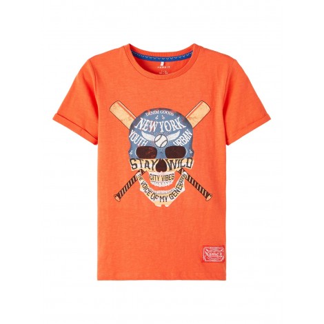 Maglia mezza manica bambino/ragazzo Name it arancione stampa teschio baseball