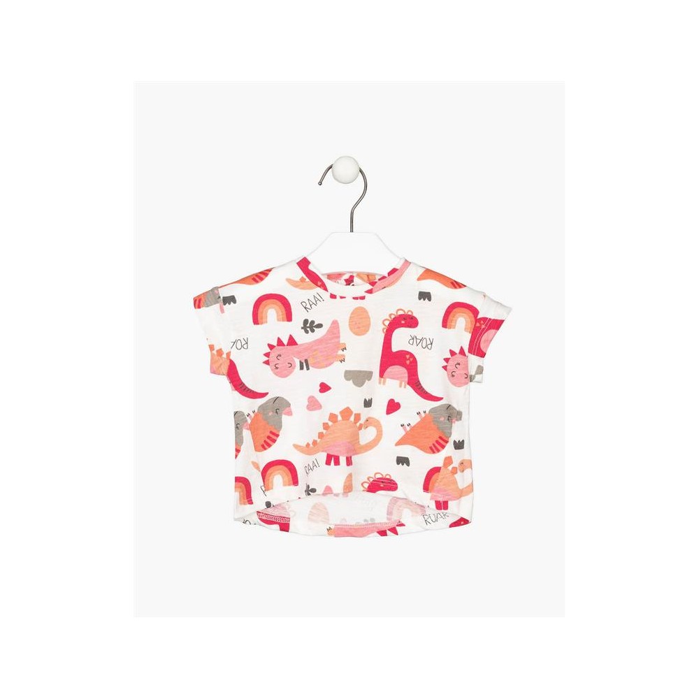 Maglia mezza manica neonata Losan bianca fantasia dinosauri