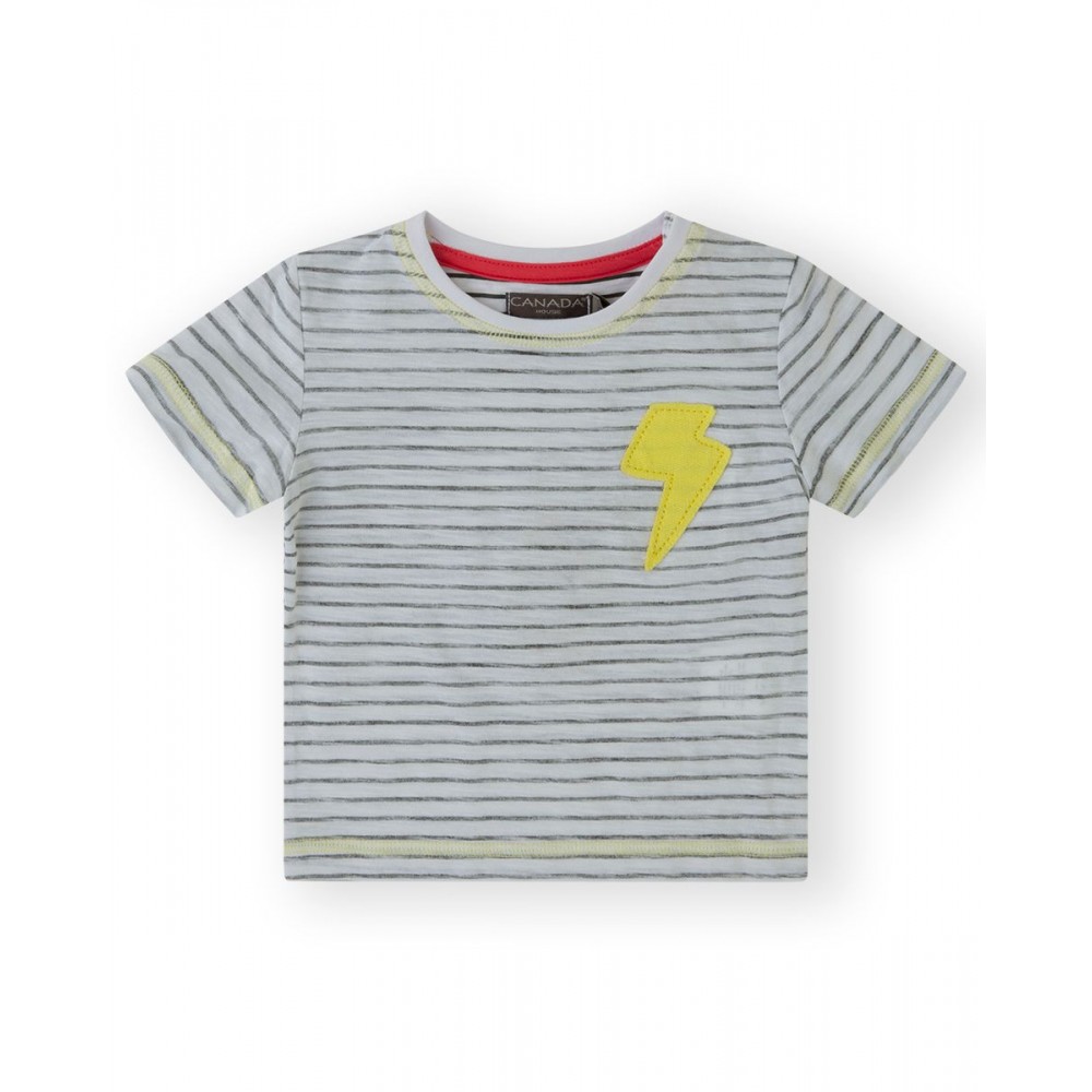 Maglia neonato Canada bianca a righe dettaglio fulmine monster, 100% cotone