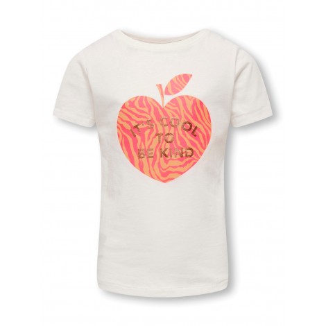 Maglia bambina/ragazza Only bianca stampa mela fluo