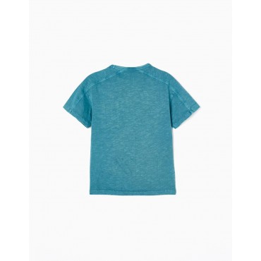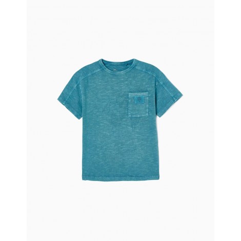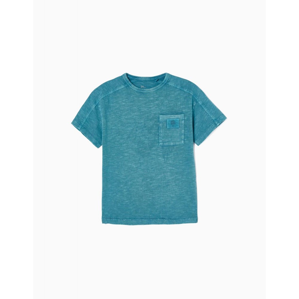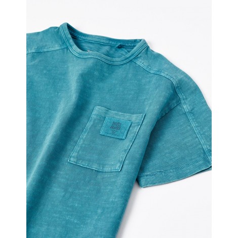 T-shirt verde acqua a maniche corte per bambino, 100% cotone. Tasca sul petto con scritta na. Tinto in capo. Etichette interne stampate per non irritare la pelle del bambino. Un capo basico ed essenziale nel guardaroba di un ragazzo, perfetto per qualsiasi look.