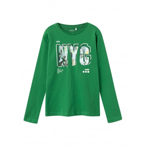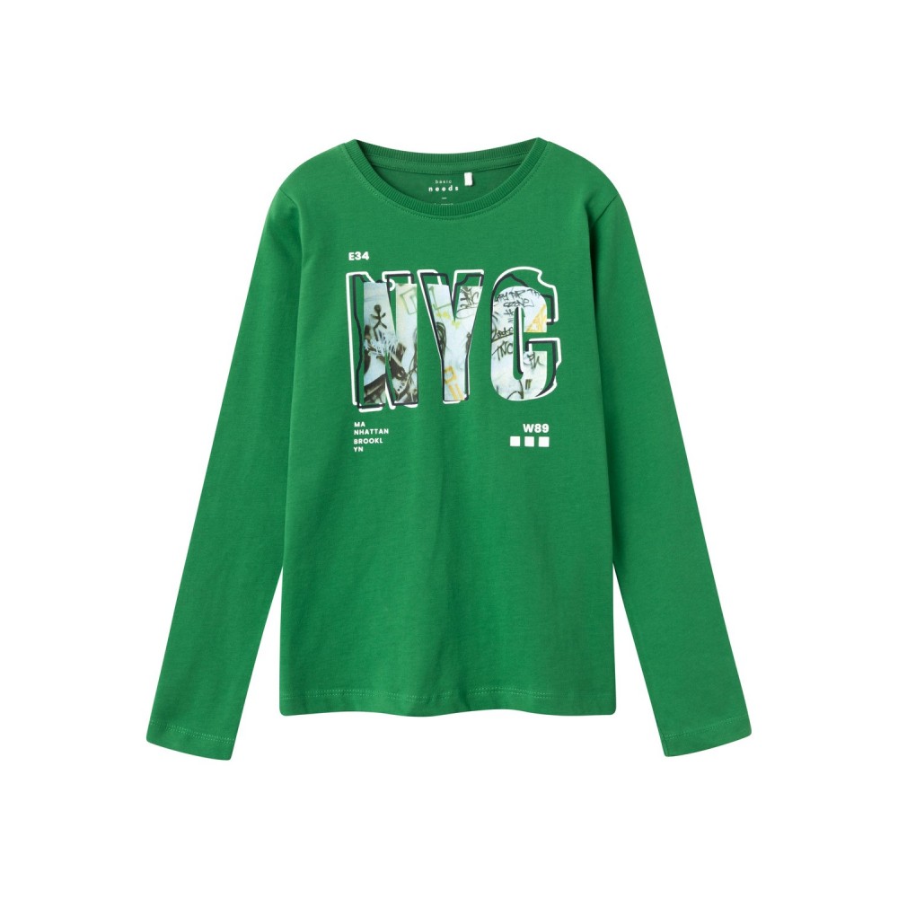 Maglia bambino/ragazzo Name it verde stampa NYC, 100% cotone