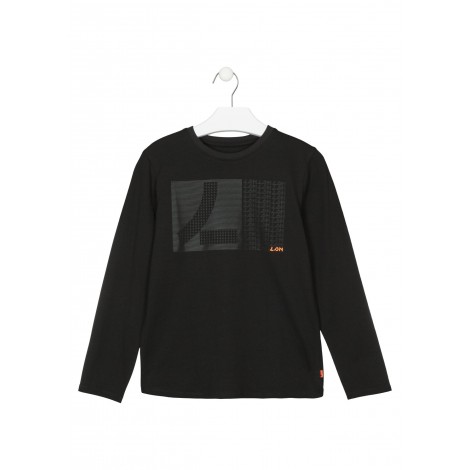 Maglia bambino Losan nera stampa LSN centrale, 100% cotone