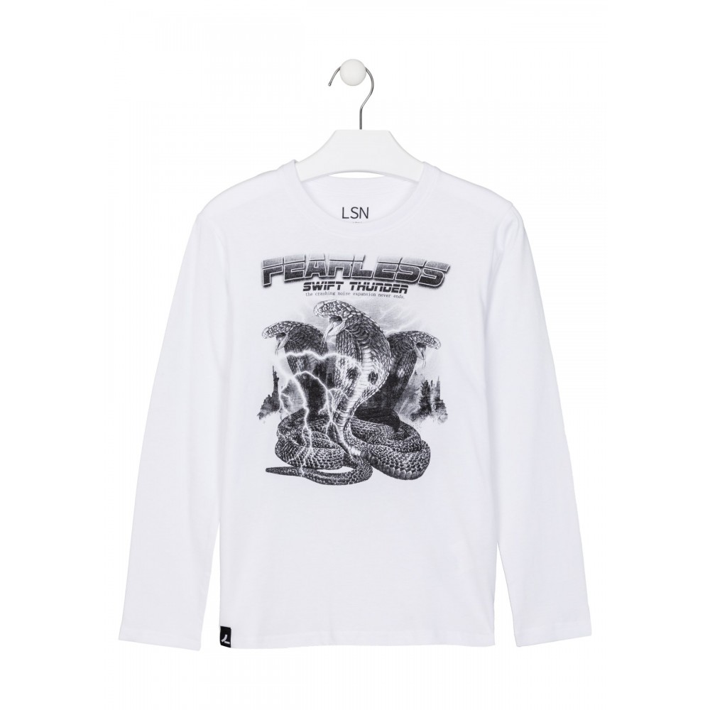 Maglia bambino Losan bianca stampa kobra, 100% cotone